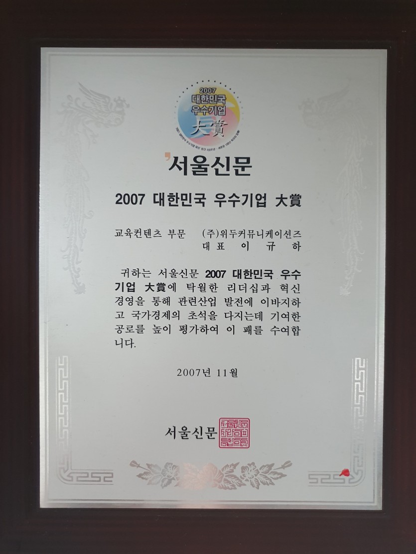 2007 대한민국 우수기업 대상 페이지 정보 작성자 WeDu 댓글 0건 조회 5,535회 작성일 19-05-30 19:31 본문 2007-11-00 대상 교육 콘텐츠 부문 2007 대한민국 우수기업 대상 서울신문 List Previous제 8회 디지털 이노베이션 대상 19.05.30