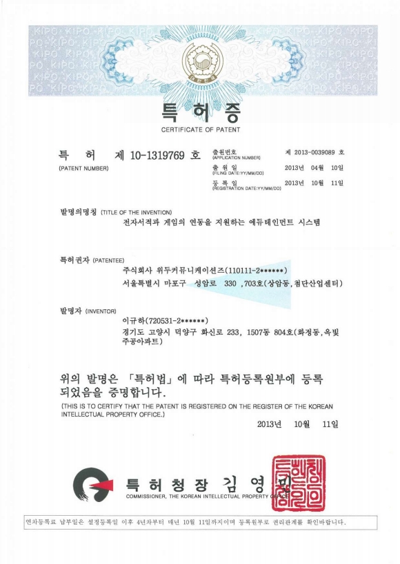 [한국/특허] 전자서적과 게임의 연동을 지원하는 에듀테인먼트 시스템